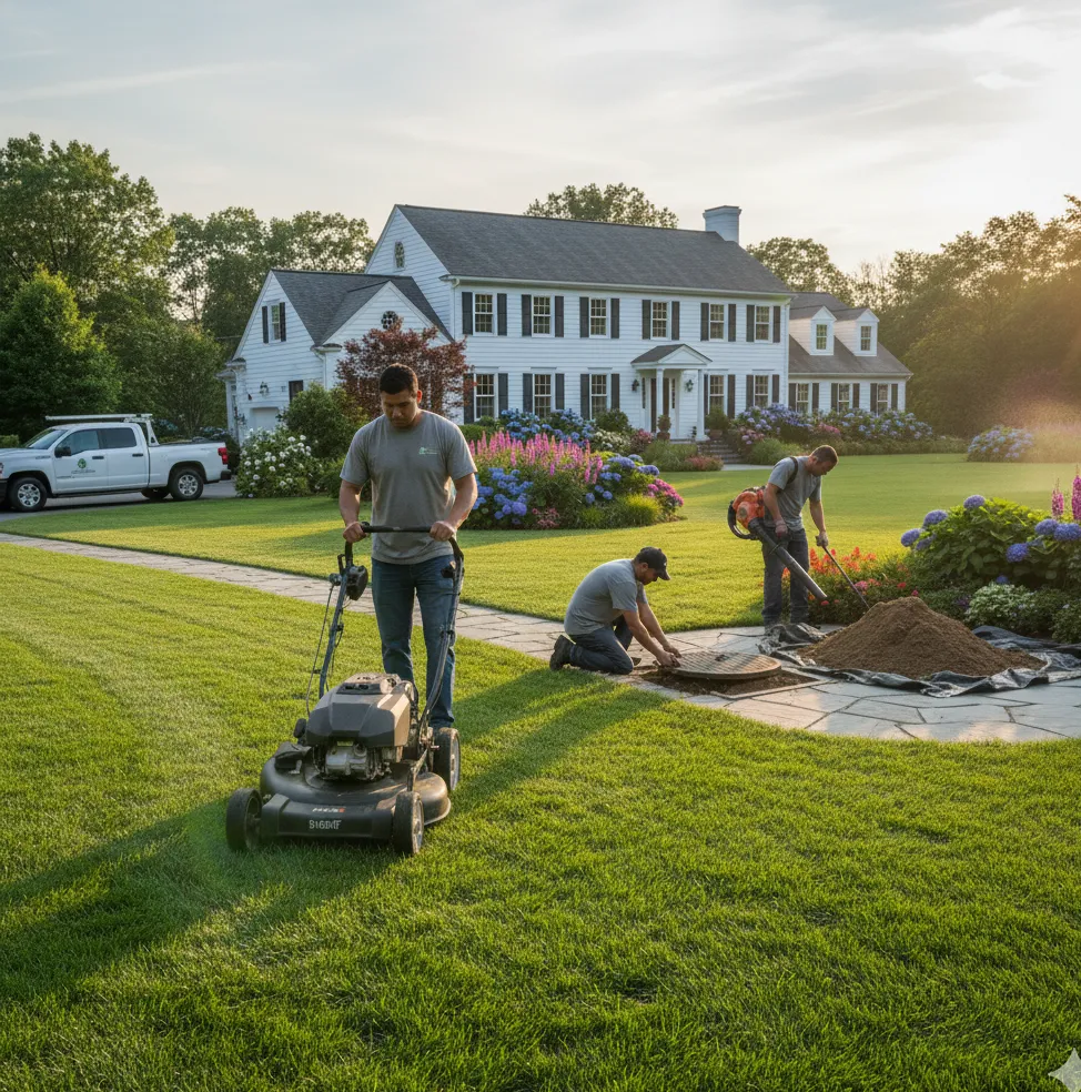 Our team provides comprehensive care, including regular mowing, aeration, and fertilization to ensure your lawn stays healthy and lush. Additionally, we specialize in designing and implementing effective drainage systems to prevent water accumulation and protect your landscape from erosion and damage.